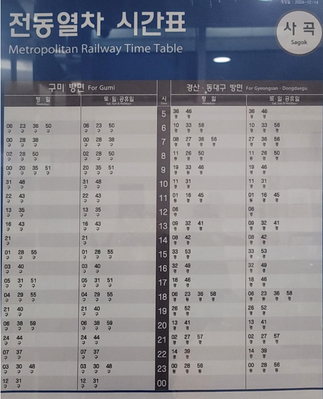 사곡역 시간표